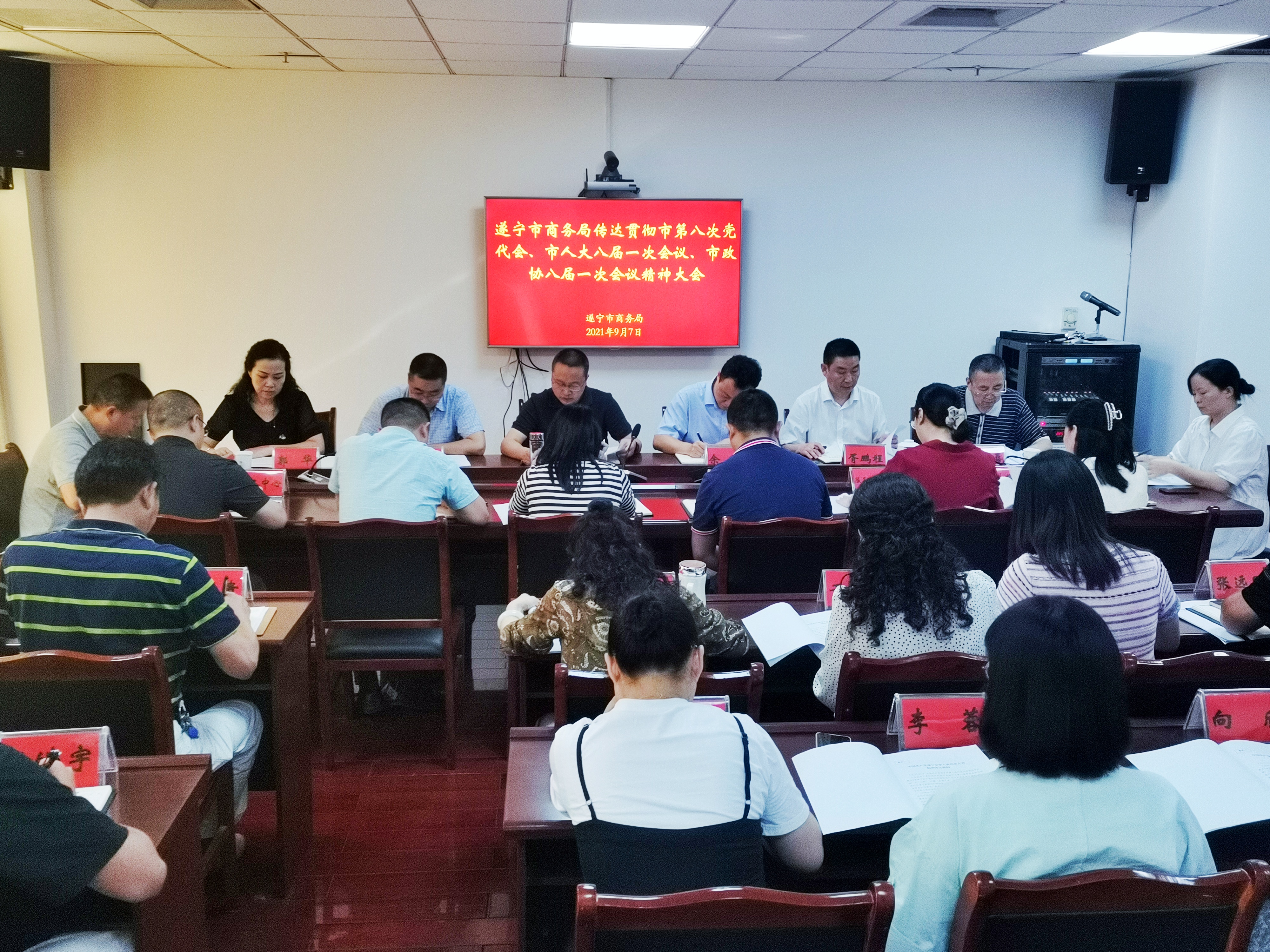 遂宁市商务局组织传达市党代会、市人民代表大会、市政协会议精神,谋划今后五年重点工作