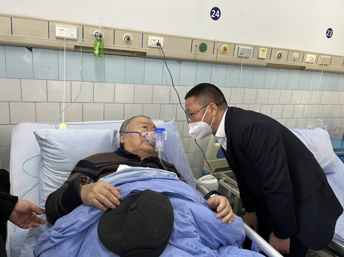 杨东先后来到胡德生、陈立海、王德生家中,询问他们的身体状况和家庭生活情况,随后看望了正在住院的杜文礼,叮嘱他积极配合治疗并祝愿他早日康复。