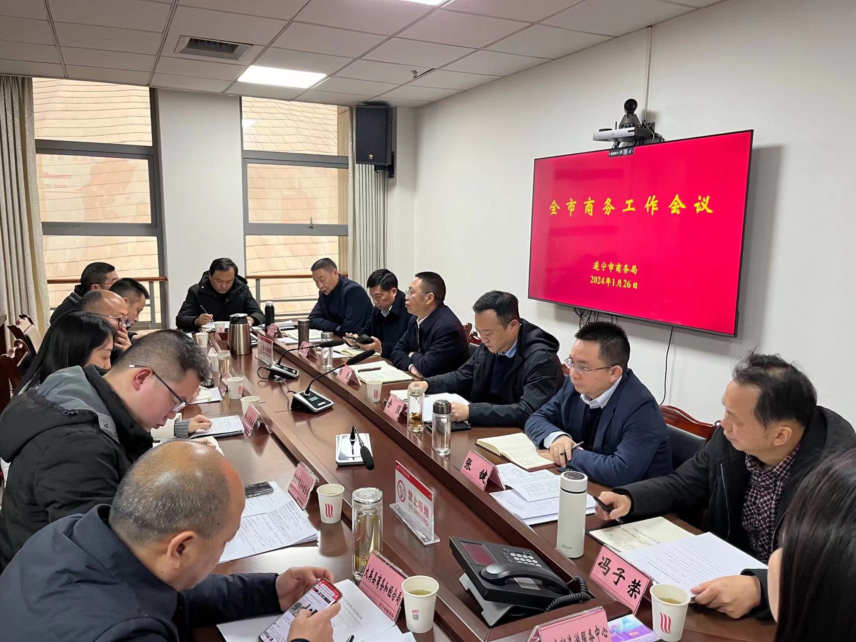 1月26日,遂宁市商务局组织召开全市商务系统工作会,传达了国、省近期商务工作会议精神,并对各项重点工作进行了安排部署。会上,市商务局党组书记、局长杨东从抓经济指标、抓消费促进、抓产业发展、抓项目建设、抓资金争取、抓底线红线等六个方面对2024年全市商务工作进行了安排部署,在升规入统、项目包装、消费促进等方面进行了业务培训,参会的各县(市、区)及园区商务部门负责人也进行了交流发言。同时参加会议的还有局党组在家班子成员、局机关各科室长及相关同志。