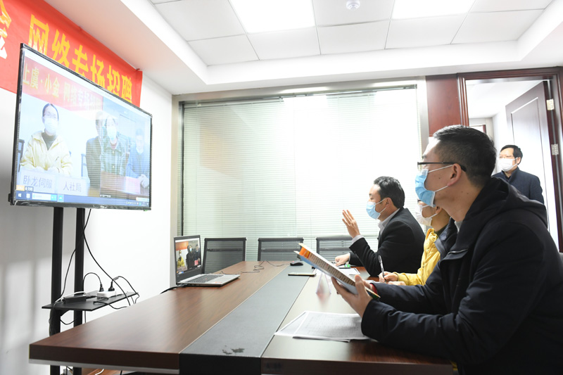 3月11日,在浙江省绍兴市上虞区人社局,上虞区用人企业和四川省小金县务工人员进行网络专场招聘。新华社记者 翁忻旸 摄