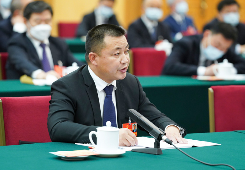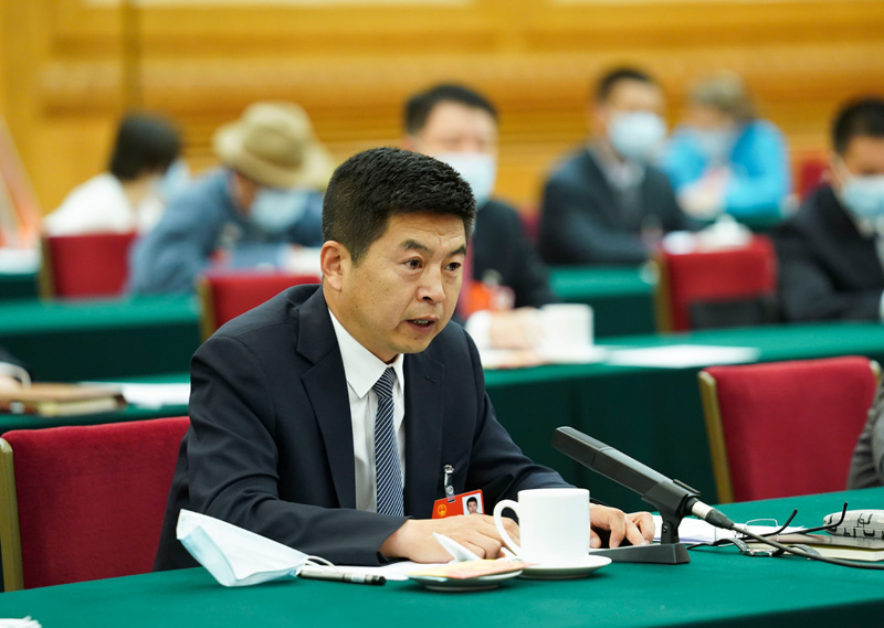 5月22日,全国人大代表薛志国参加内蒙古代表团的审议并发言。新华社记者 黄敬文 摄
