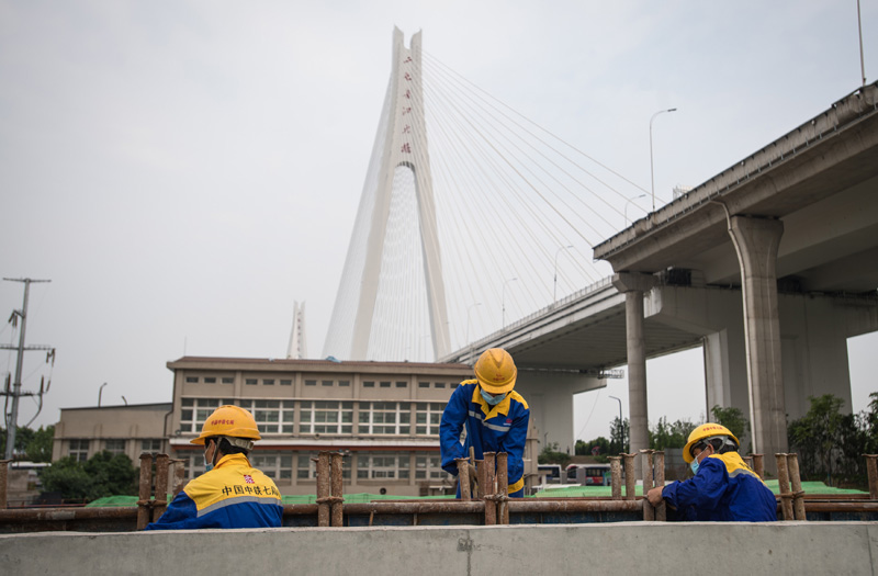 4月30日,来自中铁七局的建设者在武汉武九北综合管廊工程施工现场作业。新华社记者 肖艺九 摄