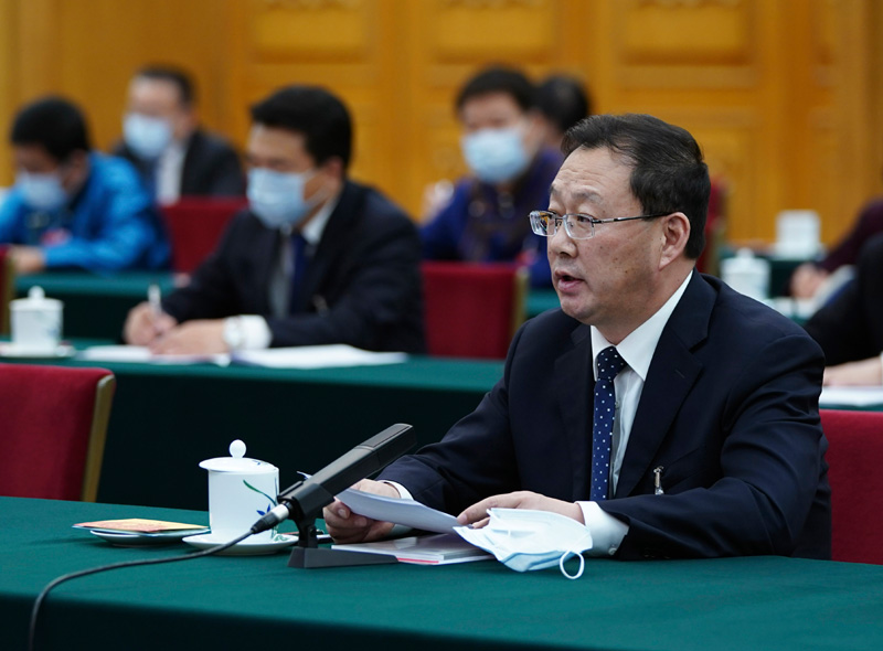 5月22日,全国人大代表费东斌参加内蒙古代表团的审议并发言。新华社记者 黄敬文 摄