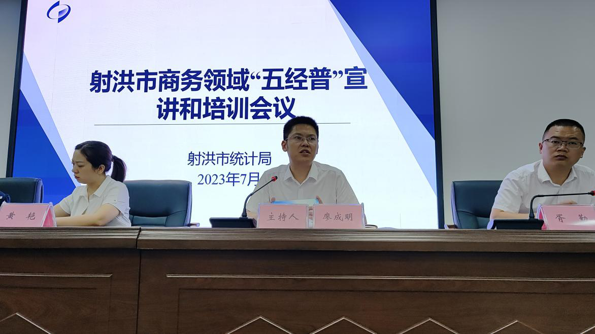 为扎实推进射洪市服务业第五次全国经济普查工作,确保高质高效完成服务业领域经济普查各项任务,7月26日上午,射洪市商务和经济合作局会同射洪市统计局组织召开射洪市商务领域五经普宣讲和培训会。