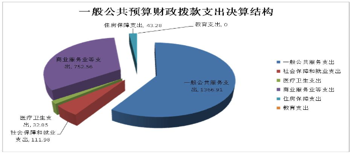 2017年一般公共预算财政拨款支出2307.58万元,主要用于以下方面:一般公共服务支出1366.91万元,占59.24%;教育支出0万元,占0%;社会保障和就业支出111.98万元,占4.85%;医疗卫生支出32.85万元,占1.42%;商业服务业等支出752.56万元,占32.61%;住房保障支出43.28万元,占1.88%。