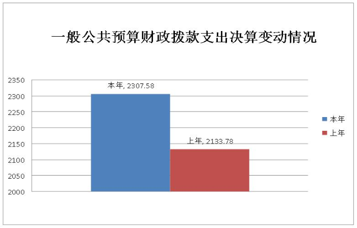 2017年度一般公共预算财政拨款支出2307.58万元,占本年支出合计的89.65%。与2016年相比,一般公共预算财政拨款增加173.8万元,增长8.15%。