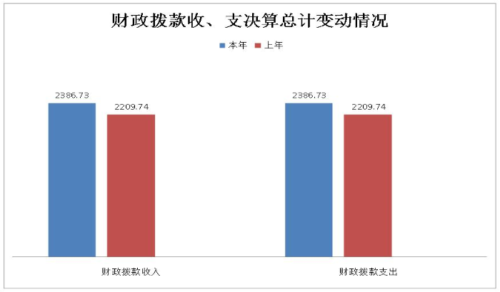 2017年度财政拨款收、支总计2386.73万元。与2016年相比,财政拨款收、支总计各增加176.99万元,增长8%,主要是财政调整人员目标奖发放。