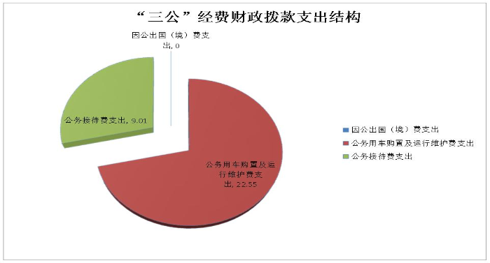 2017年度“三公”经费财政拨款支出决算中,因公出国(境)费支出决算0万元,占0%;公务用车购置及运行维护费支出决算22.55万元,占71.45%;公务接待费支出决算9.01万元,占28.55%。具体情况如下: