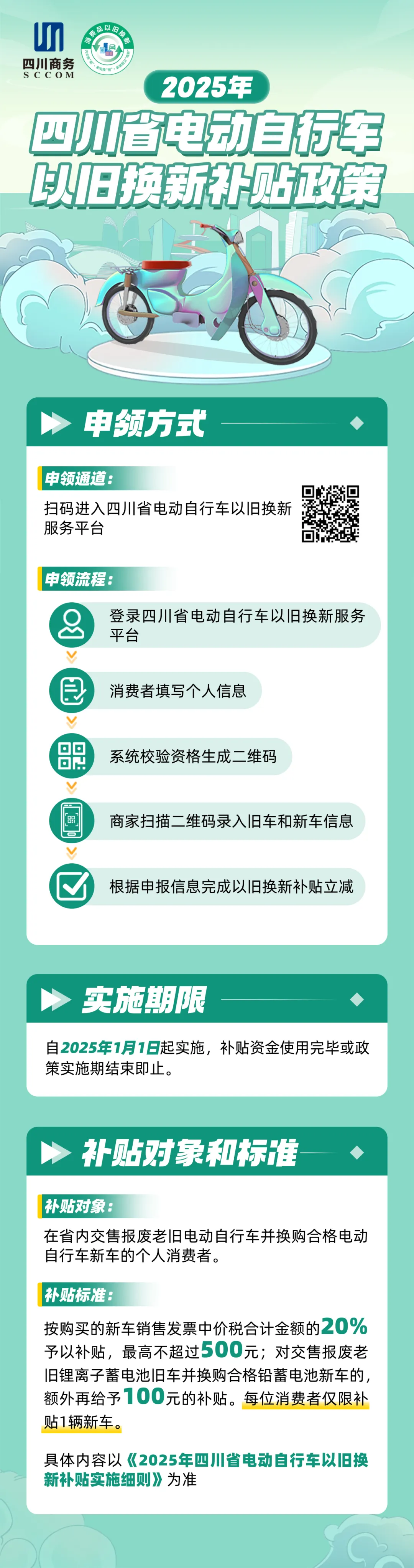 一图读懂 | 2025年四川省电动自行车以旧换新补贴实施细则