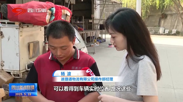 遂捷通物流有限公司操作部经理杨波:可以看得到车辆实时位置、路况这些,什么时候到达目的地。