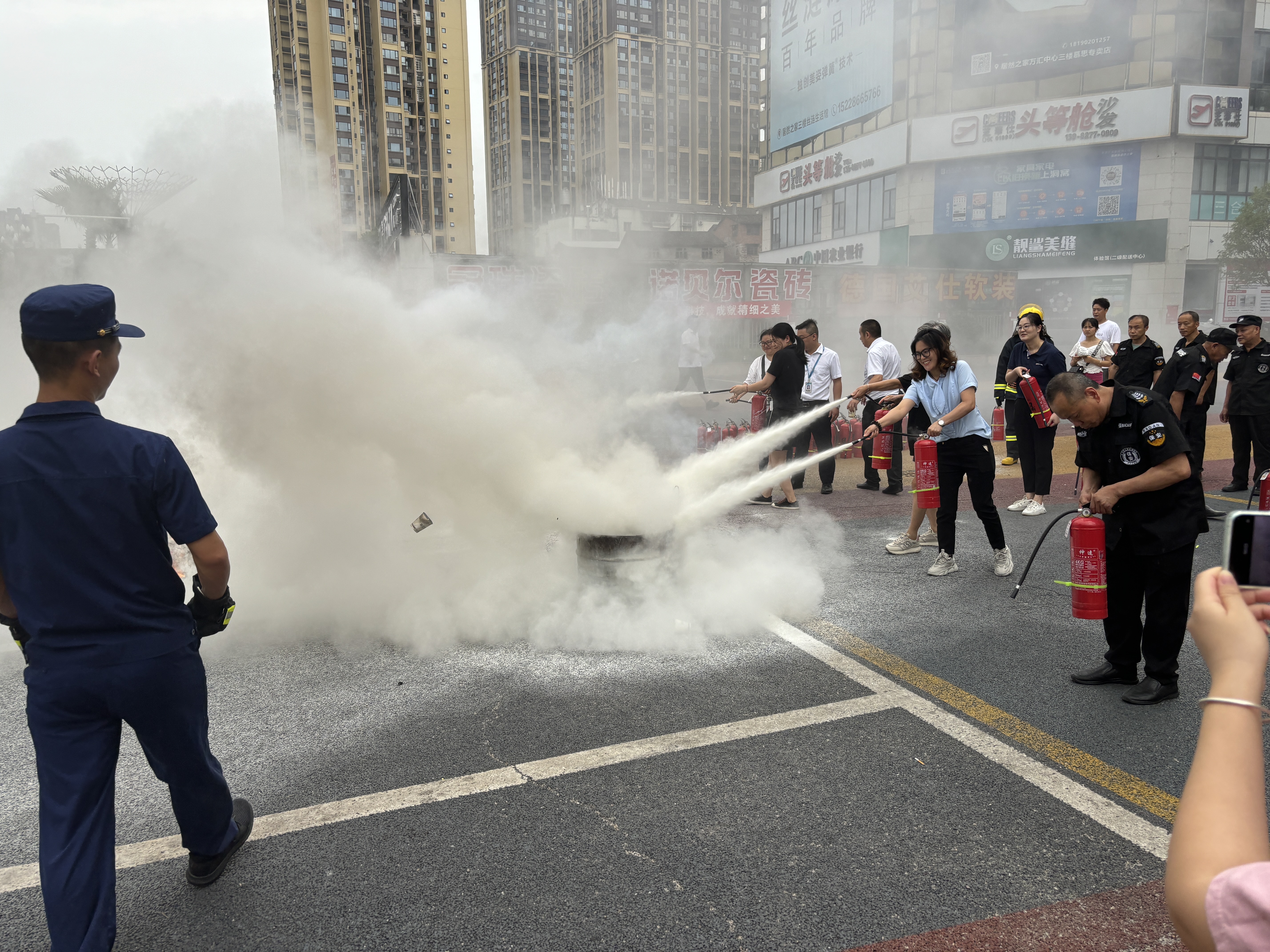 此次活动集中开展了消防警示教育片观看、消防安全知识宣讲、疏散演练和实操实训等“四个一”消防培训演练活动。培训会上,消防救援部门同志围绕《中华人民共和国消防法》重点条文解读、商贸流通领域消防安全管理、电动自行车管理、居家消防安全隐患自查、火场逃生正确方法与技巧等内容进行授课。课程深入浅出、案例丰富、干货满满,与会干部职工及企业代表纷纷表示受益匪浅。培训结束后,消防救援同志模拟火灾现场,详细讲解了干粉灭火器、逃生面罩等常用灭火器材使用方法,并现场示范操作。大家在消防救援同志的指导下,通过“提、拔、握、压”的方式,使用灭火器对火点进行喷射,现场气氛严肃、秩序井然。