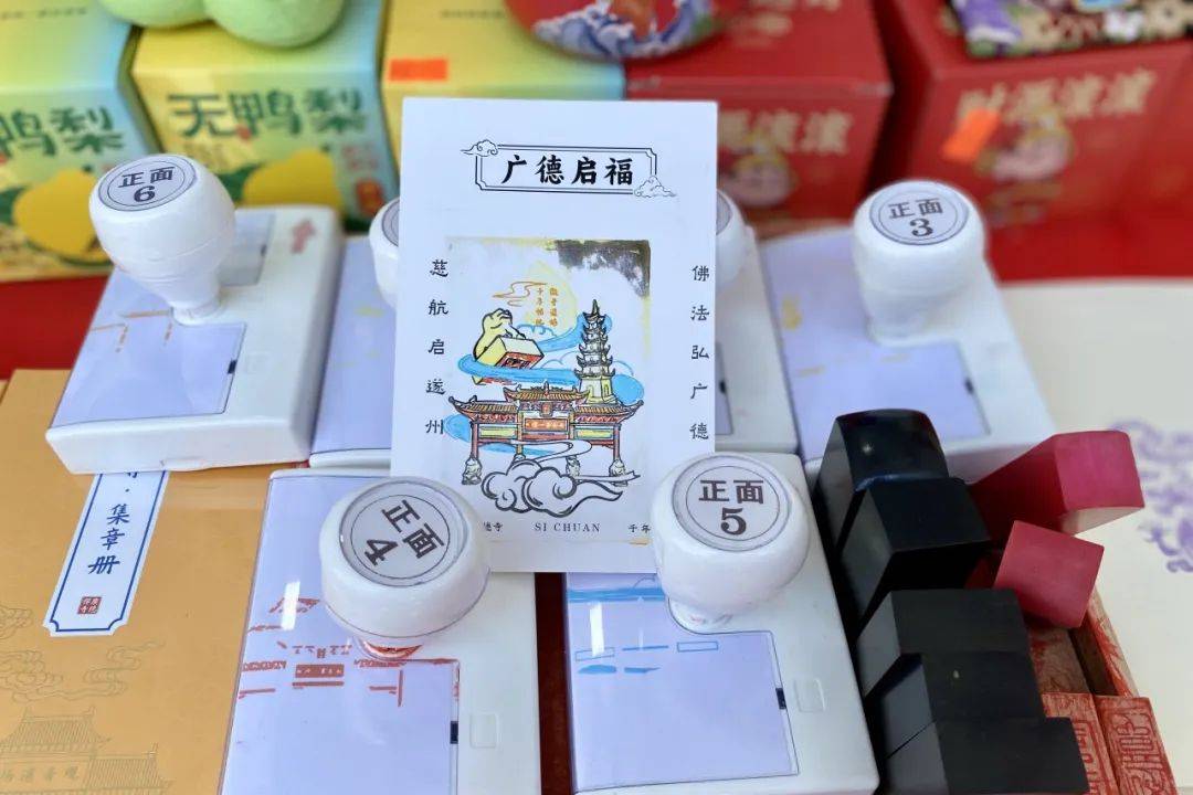 以广德景区为元素创作的广德文创产品,让广德寺再次“出圈”。展会上,广德文创带来了冰箱贴、小福包、纪念章、明信片等等。