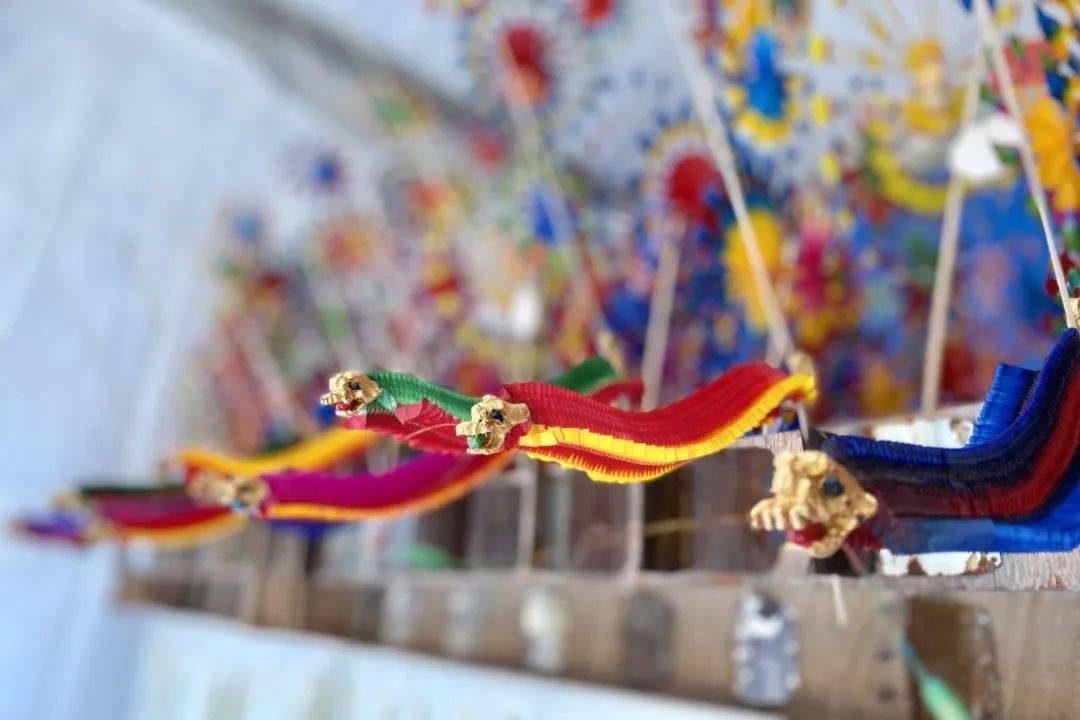 观音秀展台上,荷包、蒲团、佛枕、方巾、画像等,寄托着平安、福寿康年等美好寓意。