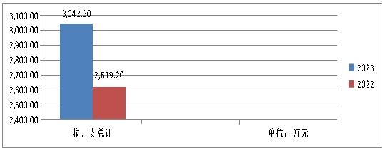 2023年度收、支总计均为3042.3万元。与2022年度相比,收、支总计各增加423.1万元,增长16.15%。主要变动原因是本年度增加中国(四川)国际熊猫消费节遂宁促进消费项目经费。